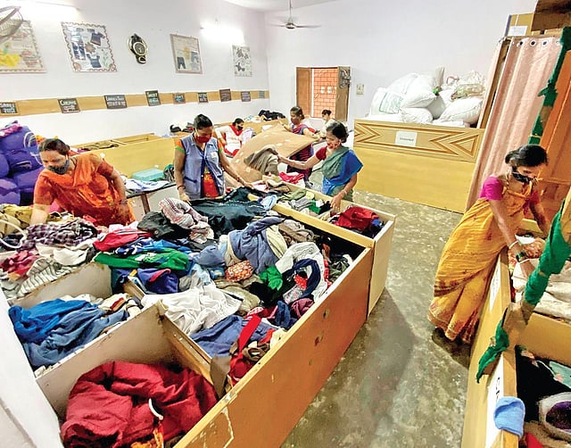 Now, she heads the sorting unit. “We segregate men’s, women’s and kids clothes. Then, compile a list of all we have, and make into kits - ration, women, married, office, and anganwari kits,” she says. She feels all women should work. “I got several women in need here, and they got jobs and are now working with confidence.”