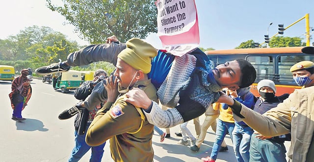 NEW DELHI: Delhi Police detained around 60 people near Shaheedi Park at Delhi Gate on Saturday for allegedly holding a protest in support of the ‘chakka jam’ call given by the farmers. Most of the people detained were students from the JNU and DU’s School of Open Learning (SOL) as well as members of All India Student Association (AISA), International Federation of Trade Unions (IFTU) and All India United Trade Union Centre (AICTU).