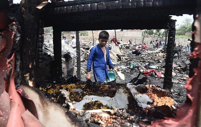 NEW DELHI: More than 50 shanties were gutted in a fire that broke out at a Rohingya refugee camp near Kalindi Kunj Metro station in south east Delhi, officials said on Sunday.