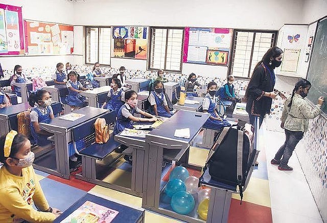 While several schools reopened with 50 per cent seating capacity on Monday, majority of private schools have deferred the reopening to post Diwali.