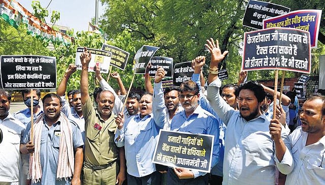 NEW DELHI: Cab and auto drivers staged a protest at Jantar Mantar on Friday demanding revision a revision of fares in the wake of the steep rise in CNG prices. The drivers also threatened to go on an indefinite strike from April 18 if their demands were not met.