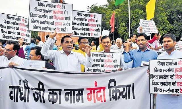 “When he was KVIC chairman he got exchanged demonetised notes by pressuring his cashier. In the Delhi branch alone, Rs 22 lakh were gotten exchanged. There are 7000 such branches across the country which means there was a scam of Rs 1400 crore,” said the ruling party. AAP MLAs demanded a Central Bureau of Investigation (CBI) and ED probe in the matter and demanded his resignation and arrest. Carrying placards of ‘LG V K Saxena Chor hai’, ‘V K Saxena ko arrest Karo’, they also protested at the Gandhi Statue in the Assembly complex.