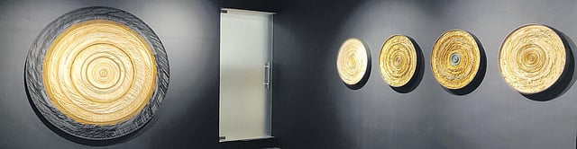 Similarly, Kumaresan Selvaraj from Chennai provides an outlook of his experiences with nature through his works. His exhibit 'Representing altitudes through depth', made of paper and synthetic adhesive on wood, narrates the state of order and disorder that occur simultaneously in nature.