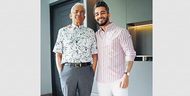 Social media influencer Abhinav Mathur (right) and his father Arun Mathur. (File Photo)