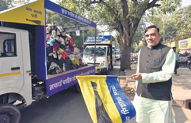 NEW DELHI: Claiming that the three garbage mountains in Delhi that have become symbols of BJP’s lack of governance in the MCD for the last 15 years have brought immense shame to people, the Aam Aadmi Party on Friday announced to take the issue to every street in the city. It also launched a campaign with tempos carrying models of garbage mountains of BJP.