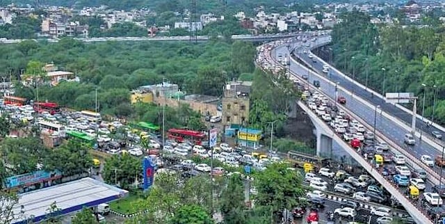 Due to the non-commencement of traffic from the three-lane carriageway of the Ashram Extension flyover (going from Sarai Kale Khan to AIIMS), the traffic is currently passing under the flyover which creates a snarl between Ashram Chowk and DND.