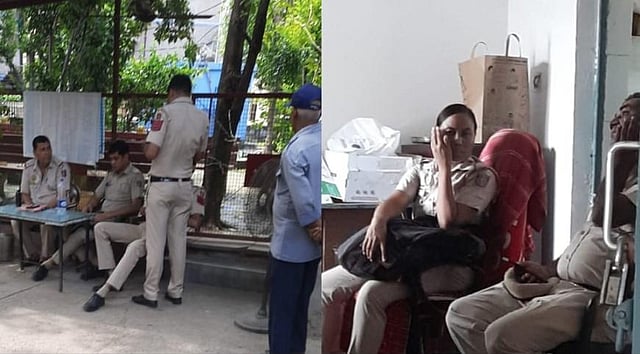 "We haven't been shown any warrant or order and we don't know how long they will be here," he said. Abhigyan also shared two photos of people sitting in police uniform sitting outside their flats.