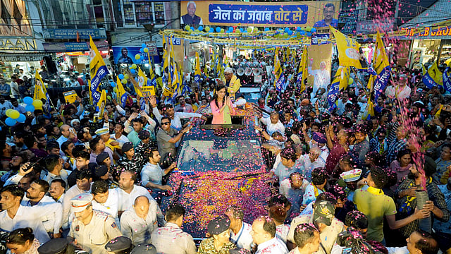 With Kejriwal behind bars in a money laundering case, his wife continues to spearhead the AAP's poll campaign and hold roadshows.
