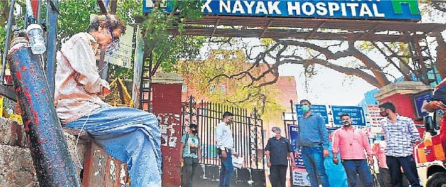 A COVID-19 patient waits for his admission outside Lok Nayak Hospital, Jawaharlal Nehru Marg, as cases spike in New Delhi.  (Photo | Shekhar Yadav/EPS)