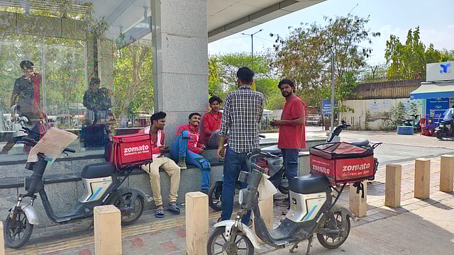 Sumit’s experience echoes that of many others, like Radhe Shyam, a seasoned delivery worker at Zomato and Swiggy, who finds respite in the shade of Nehru Place Metro Station between deliveries. “We get no extra support during summer, no first aid, and unreliable emergency contacts,” Radhe Shyam shares, revealing the stark realities that accompany the gig economy.