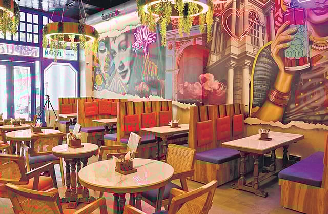 Ambience with retro wall art in Delhi's new Indian Republic Canteen. Express