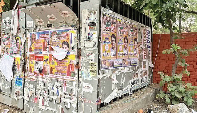 Be it the poles, walls, traffic signage, or even the popular hangout spot near the Vishwavidyalaya Metro Station, were found heavily plastered with the campaign materials