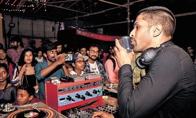 "At a Delhi Sultanate show, there is a desk with his collection of vinyl records and two turntables placed around on a box that reads ‘This Machine Kills Fascists’. When he plays his music, the audience looking towards his set dances and grooves in tandem with each other. The roots of reggae are deeply political. Delhi Sultanate says: “It evolved from the slave dances in Jamaica, born out of the need to transgress trauma and it forms an alternative basis of community through music and dance. It gave people cultural confidence and built resilience.”