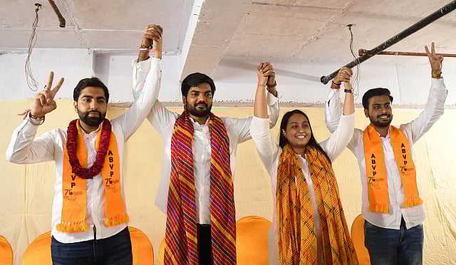 In 2023, after a four-year hiatus due to Covid-19, the ABVP once again emerged victorious in the presidential race. “I wish to work on developing facilities and encouraging students to participate in sports activities.” ABVP’s Aman Kapasia, who has been a national Archery player, said.