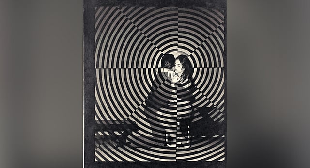The evocative images on display include works, such as ‘Black and White’ (1980), ‘We Are Here’ (1980), and ‘I Am Alone’ (1980), created using silver gelatin techniques. In ‘Black and White’, geometric patterns contrast sharply with silhouetted human figures, evoking a sense of isolation and contemplation with the stark lines of the photogram inviting the viewer into a maze of introspection.