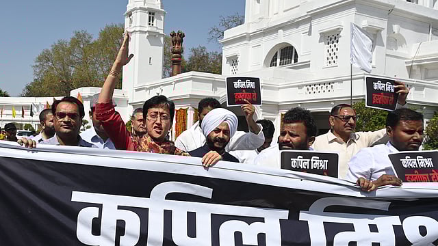 The AAP legislators, carrying placards and raising slogans, stormed into the well of the House, prompting the Speaker to remove them from the Assembly floor. In addition to the protest in the Assembly, AAP leaders staged a demonstration near the Mahatma Gandhi statue in the Assembly complex, holding banners that read “Kapil Mishra Istifa Do” and chanting slogans.