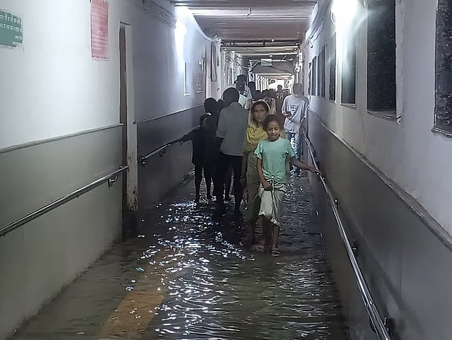 Videos surfaced on social media showing flooded corridors inside the hospital, where patients and attendants were seen clutching walls for balance while navigating submerged passageways.