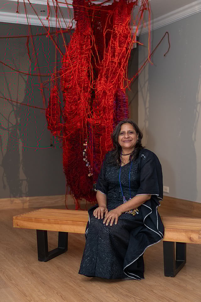 The artist says, for her, the colour speaks of the struggles of an artist, sometimes because of a passion felt deep. The shades of red expresses nuanced reflections on the cycles of growth, decay, and renewal that define both nature and human experience, she adds.