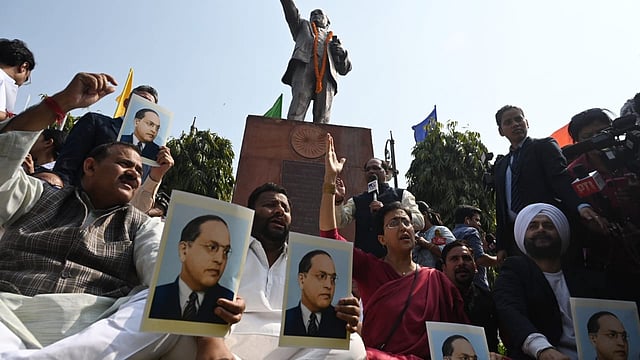 The suspended AAP lawmakers later held a protest on the assembly premises with Ambedkar portraits, raising "Babashaeb ka ye apman nahin sahega Hindustan (India will not tolerate this insult to Babasaheb)" slogans.