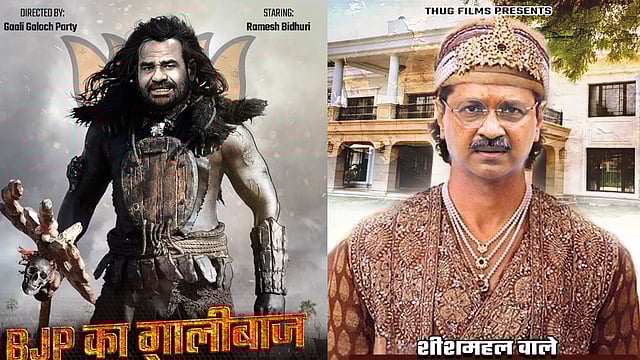 The BJP retaliated with its own poster, targeting AAP chief Arvind Kejriwal and labelling him "Sheeshmahal wale AAP-Da-e-Aazam." The poster was captioned, “Thug Films Presents Sheeshmahal-dwelling AAP-da-e-Azam. Directed by Arvind Kejriwal.”