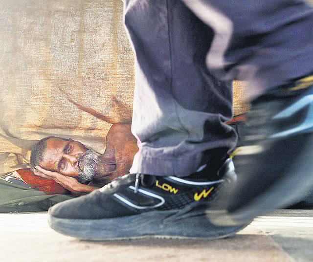 Just a few kilometres away, in front of the AIIMS hospital, dozens of homeless individuals lie sprawled on the footpath, their bodies weak from exhaustion and dehydration.