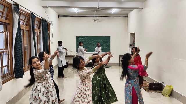 There was no formal audition or interview, he recalls—not even a costume trial. “She met me after a performance where I was in the audience and simply said, 'I have found my Rabi.'” As the rehearsals winded down and the group sat in a semicircle still singing the Tagore song merged with a tarana—a fragile space where art can breathe was taking shape. Narayan’s attempt to revisit a deeply human story that shaped one of India’s greatest literary minds was sharpening its form behind closed curtains through movement, music and memory.