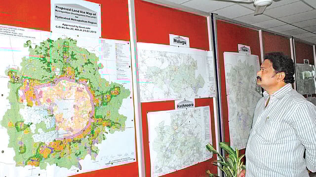 The master plan approved by the state government is displayed at HMDA’s head office at Tarnaka in Secunderabad along with zoning and development promotion regulations.