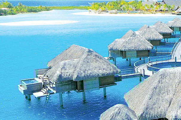 The Four Seasons hotel in Bora Bora, French Polynesia, has been featured on Conde Nast Traveller’s Gold List 2013. Lushescapes, a travel outfit, offers a 6N stay in French Polynesia, with stops in Tahiti, Moorea and Bora Bora. The Four Seasons, Bora Bora, with its glass-bottomed bathrooms, allows you to gaze at fish while enjoying your shower. Includes visits to the heart-shaped Tupai island, accessible only by air and the luxury bungalow on the Haapiti private motu (island).