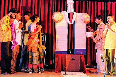 In a bus filled with stage props, equipments and make-up, a group of 10 amateur theatre artists set out for their first-ever performance. The discussion has a tinge of nervousness as they discuss their experiment combining a mix of songs, dance and acting to be presented in front of a 600-strong audience. However, the three month long training in theatre helped them give a fine performance at Warangal which was evident from the encored.