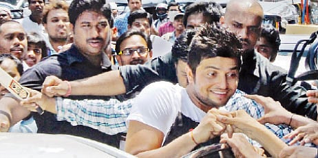 Dressed in a simple white T-shirt and trousers, the cricketer was having a good time posing for pictures and signing autographs for a few fans at the Nagarjuna Circle Adidas showroom on Tuesday.