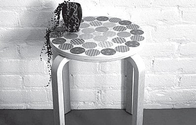 n Cut out a variety of two inch circles and arrange them on your stool until you’re happy with the composition.