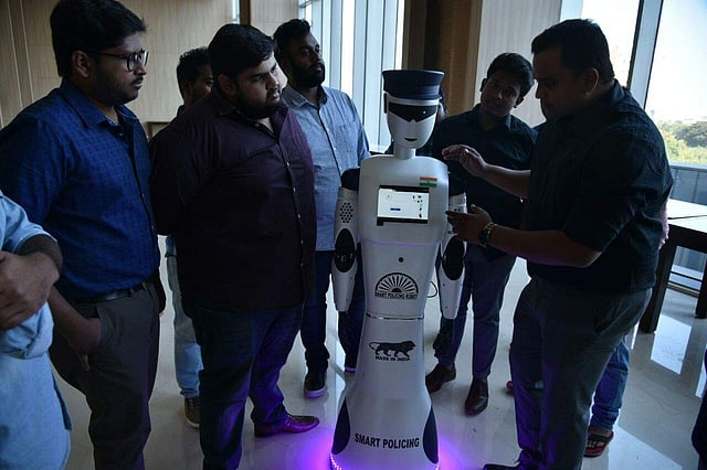 HYDERABAD: A life-sized robot, claimed to be the world's first smart policing robot, was launched in Hyderabad city on Friday. The five-foot-seven-inch, suave looking bot called the Smart Robo Cop is equipped with cameras, and an array of sensors connected to GPS in its beta version and has been developed by H-Bots Robotics, a Hyderabad-based robotics technology company. All the components have been sourced from within the country. It has been created to support security systems in the city and is likely to be deployed by July next year.