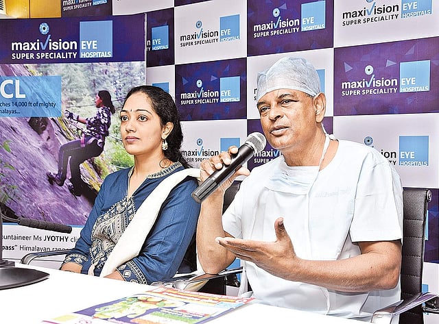 HYDERABAD: City-based MaxiVision super speciality eye hospital has announced that they could facilitate a myopic patient, who has been treated successfully at the hospital, to fulfill her life’s ambition to reach the Himalayan range altitude of 14,000ft post ICL surgery. Jyothi Peddibhotla, 38 years, a myopic patient turned mountaineer approached Maxivision with a life ambition to climb Himalayan range up to 14,000ft. She is myopic for 20 years and wears contact lenses.