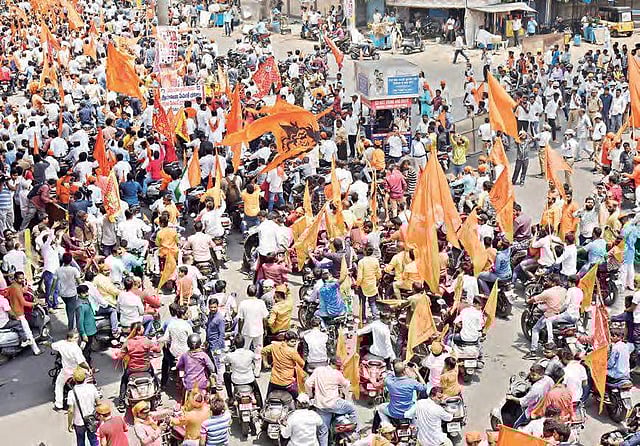 HYDERABAD: Despite advisory issued by the police regarding the diversions for Hanuman Jayanti in advance, several commuters were caught unawares. Clad in saffron clothes, waving saffron flags of varying sizes, shouting religious slogans, thousands of bike-borne devout participated in the procession in the city. The rally covering 12 km started at 10:30 am from Gowliguda Ram Mandir and concluded at Tadbund Hanuman Temple later in the night.