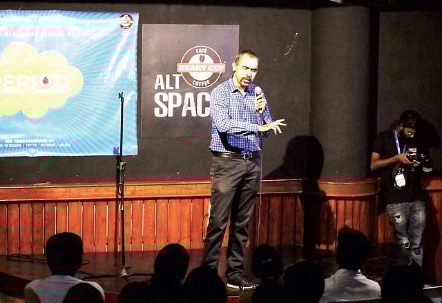 I wear pads. I bleed.”Next up was stand-up comedian Alick Bailey, who took the stage to get the crowd laughing about everything from Delhi jokes to “being late”. But the star of the show was city comedian Rajshekhar Mamidanna who got everyone in attendance laughing, although the topic of discussion was no laughing matter. And he fittingly so ended his performance with an incident of harassment against women and asserted “We need to start respecting women and get the ball rolling to have conversations on everything including periods and menstrual hygiene.” And with his trademark line: “it’s okay to be an introvert. It’s okay to be an extrovert. But it’s not okay to be a pervert.”