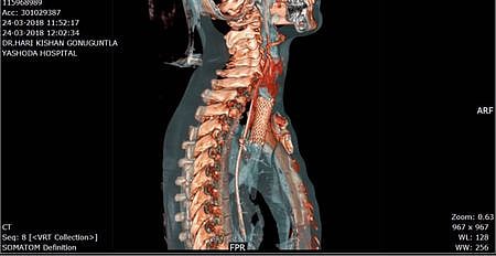 The patient had a large cancerous growth in the esophagus compressing his air passage (trachea). When the patient consulted the doctors at the Interventional Pulmonology clinic at Yashoda, he was found to be in impending respiratory failure. "To save his life,the Interventional Pulmonology Team decided to place a self-expandable fully covered Niti S Tracheobronchial stent as a life-saving measure, until he gets his primary cancer treated by chemo-radiation," explained Dr Hari Kishan Gonuguntla, Interventional Pulmonologist who led the team.