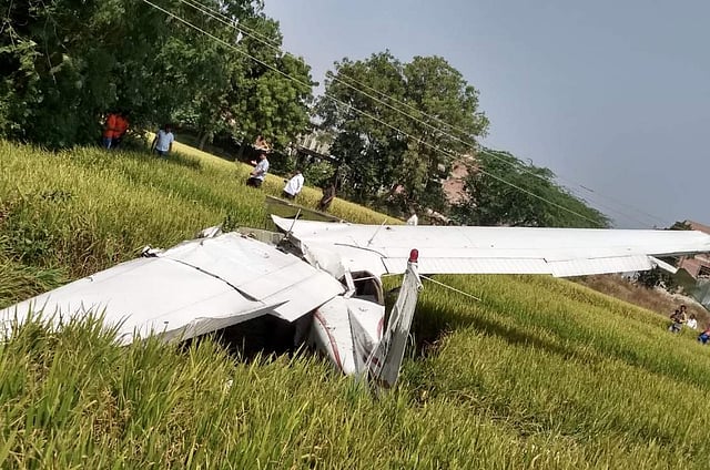 The aircraft was partially damaged and it is learnt that there was only a pilot trainee in the four-seater aircraft at the time of incident.
