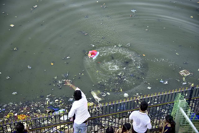 As per TSPCB data, at all six points including at centre of the lake near the Buddha statue, the Dissolved Oxygen(DO) level was ‘Nil’ or zero, during the festival period. DO is the amount of oxygen available in water, crucial for the survival of any aquatic species.