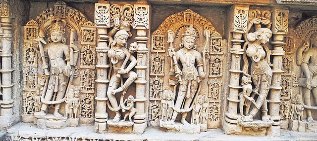 Devised as an inverted temple highlighting the sanctity of water, it is divided into seven levels of stairs with sculptural panels of high artistic quality; more than 500 major sculptures and over a thousand minor ones combine religious, mythological and secular imagery, often alluding to literary works. The fourth level is the deepest and leads into a rectangular tank. The well is located at the westernmost end of the edifice and consists of a shaft of 30 feet in diameter and almost 100 ft deep.