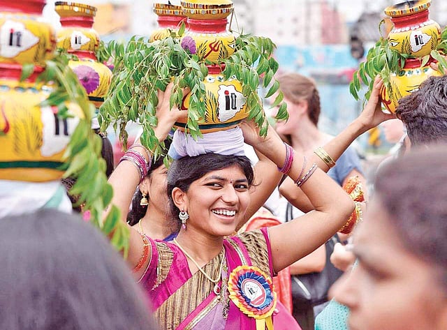 HYDERABAD: Bonalu is here, and it’s not only the elders of the family who are taking part in the religious gaiety. Youngsters too are all excited to don their ethnic clothes and take part in the rituals.