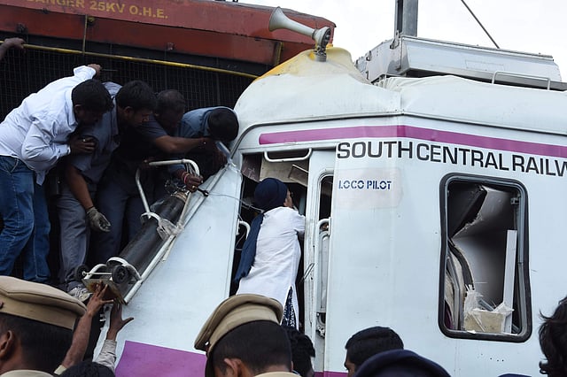 The loco pilot was trapped in his cabin after the MMTS he was driving hit the Hundry Express on Monday morning.