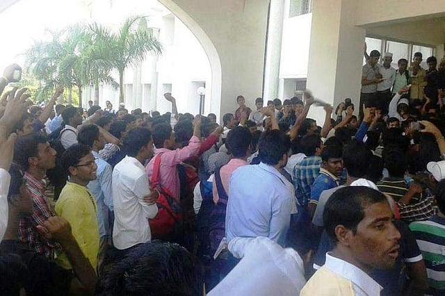 According to eyewitnesses of the clash that broke out on Monday night at the Maulana Azad National Urdu University (MANUU), turned so violent that the two groups started pelting stones at each other and even used sticks to beat each other up. Many students, especially the adolescent polytechnic students, were severely injured.