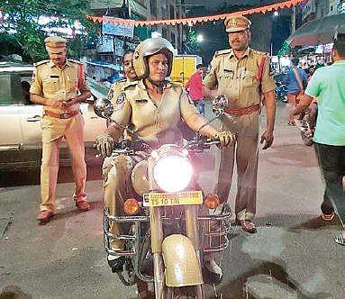 As a pilot project, first time in Hyderabad police, two women police constables, are assigned in performing patrolling duties on Royal Enfield bullet to prevent untoward incidents during Ganesh festival.