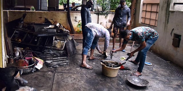 The source of the fire is suspected to be an electric short circuit in the kitchen. As a result, three gas cylinders, which were reportedly kept in the kitchen, exploded, causing locals to panic.