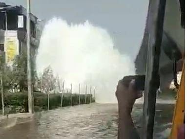 Videos of the drinking water gushing out with enormous force from the damaged pipeline and water flooding the nearby road went viral on social media.