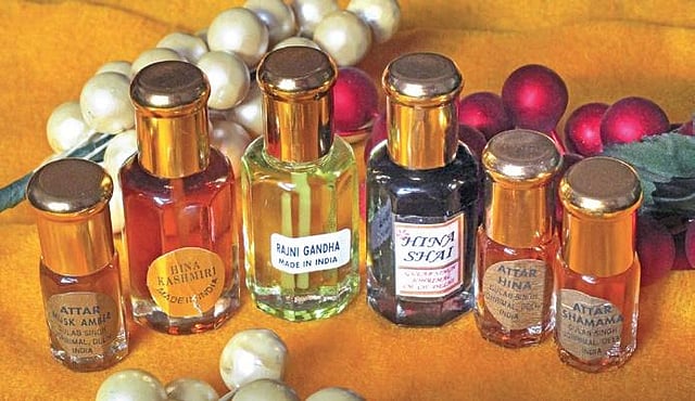 “Attar binds members of diverse faiths. While today, perfume oils spell versatility with a wide range that even includes western-style aqua and green notes, there is a huge market for Arabesque scents. Apart from my Muslim clientele purchasing them during Eid, I even have global aficionados lapping them up” shares senior perfumer Krishan Mohan Singh of the 200-plus years old Gulabsingh Johrimal attar tradition.According to him, Mukhallats can be identified by the typical saffron top note, patchouli, woody notes, rose, musk and oud.