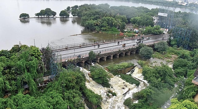 Greater Hyderabad Municipal Corporation (GHMC) authorities alerted people residing in low-lying areas near Tank Bund and were asked to take the necessary precautions. With steady inflows, excess water was draining out downstream through the vents at Hotel Marriott end.