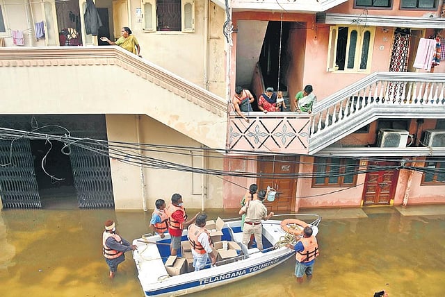 HYDERABAD: Even two days after the great deluge, at least 100 colonies in Hyderabad continued to be under water. Waterlogging persisted in areas under LB Nagar, Malakpet, Chandrayangutta, Karwan, Serilingampalli and and Malkajgiri circles of the GHMC. Unable to move out, people were hit hard as power shutdowns added to their misery.