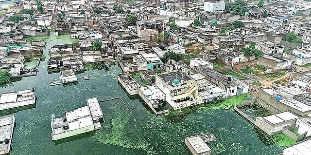 The water first entered Shaheen Nagar on September 21 after heavy precipitation in the area. After the current spell of devastating rains in the city, the inundation intensified in the area. The stagnant water is riddled with algae, sewage, plastic giving rise to the risk of water-borne diseases.
