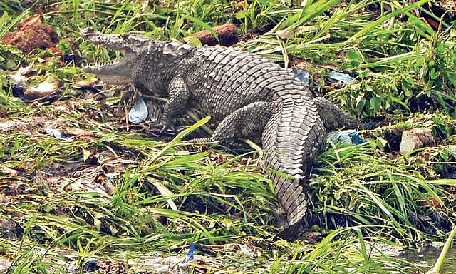HYDERABAD: After the heavy rains on Thursday, a crocodile was spotted resting on the banks of Musi river near Purana Pul in the Old City area of Hyderabad. The sight of the crocodile caused much commotion among the public as they gathered to take a look of the wild animal in the midst of the city. However, the crocodile did not wait there long.